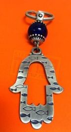 מחזיק מפתחות חמסה חלולה עם איורים של דגים.